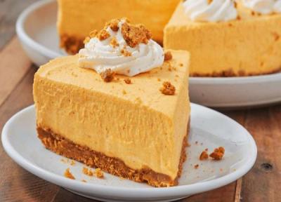 2 طرز تهیه چیز کیک کدو حلوایی یخچالی و در فر با پایه بیسکویت
