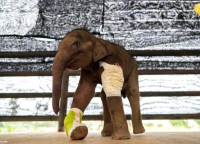 این فیل سه ماهه در یک تله شکار پیدا شد. در حالی که از شلیک تیر های شکاری آسیب دیده بود.